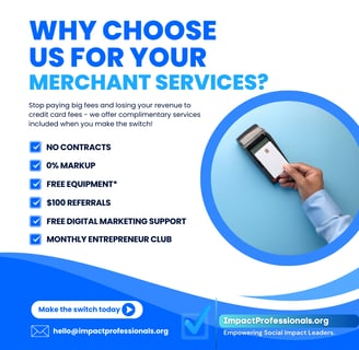 ImpactProfessionals.org offers a modern, transparent, and mission-driven solution for small business credit card processing. Here’s how they help business owners save and grow: