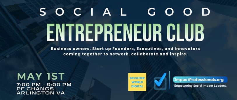 Don't miss the Social Good Entrepreneur Club Event - May 1 at P.F. Chang's Arlington, VA! Network, collaborate, and grow your social impact brand. Register now!